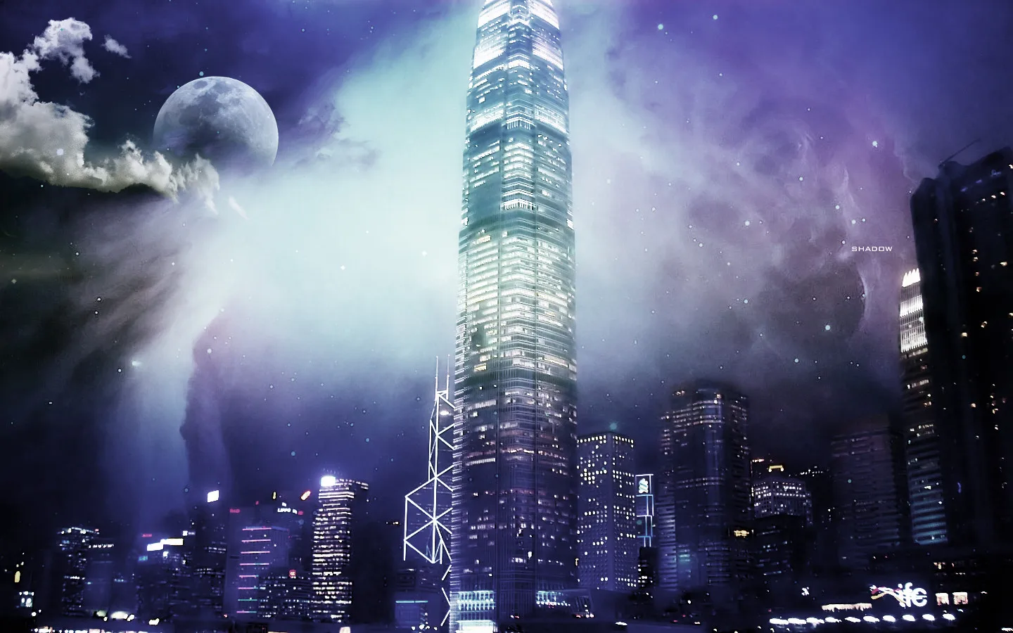 远处是汇丰银行的大楼,这个紫色感觉真棒。