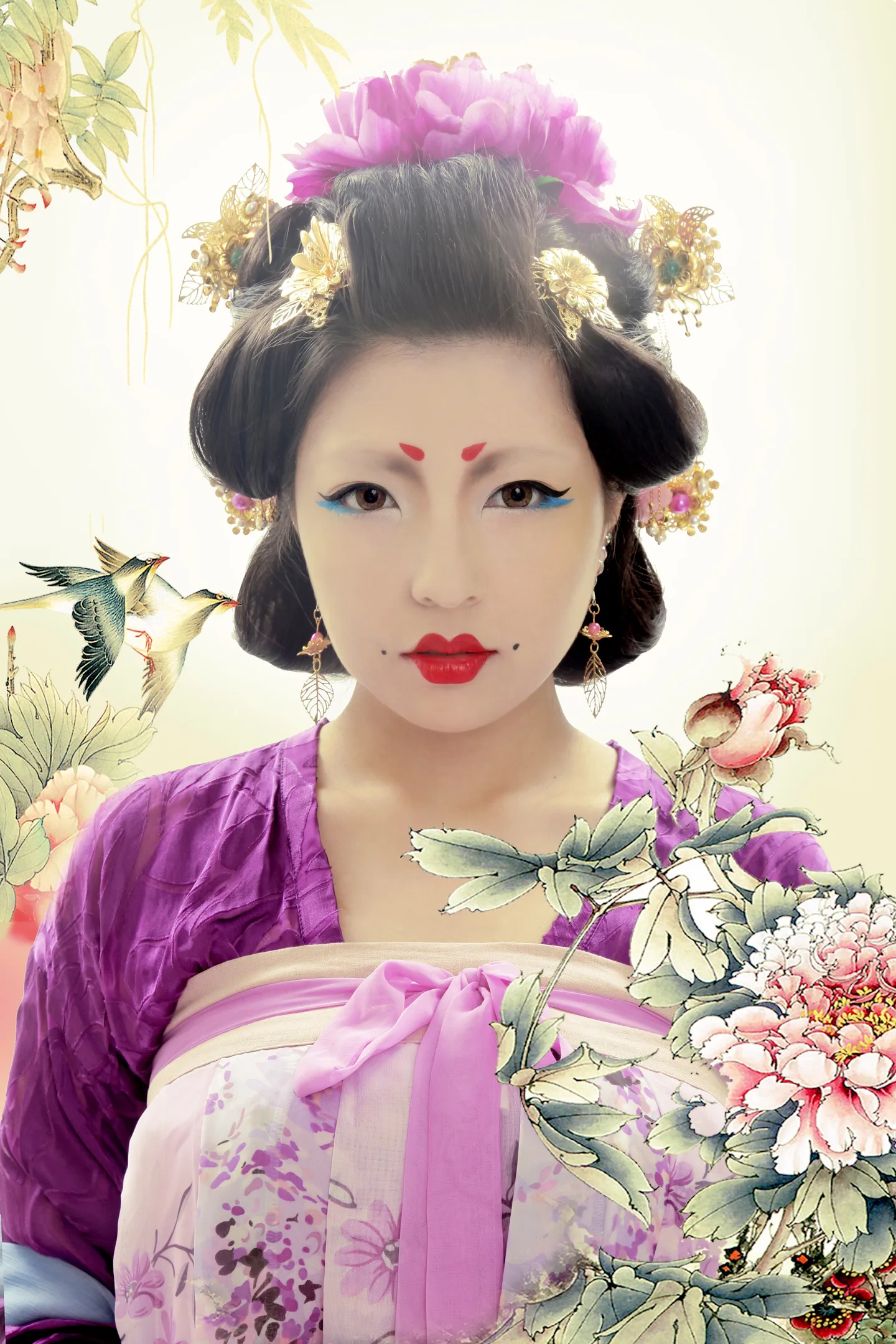 求p时尚唐妆妆面~要能把眉尾修掉,只留眉头 头发修饱满