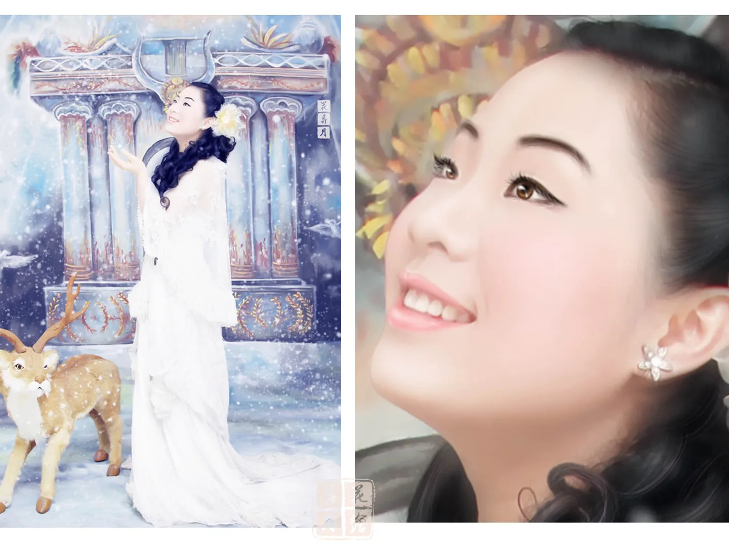 背景朦胧、突出主人公 突出背景落雪和落雪效果 小鹿鹿角胶水修掉 另求手绘~