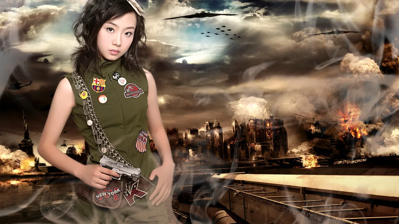 做成宽1366 高768的大小 美化人物脸部 美化身材/体型 换一个好看的背景