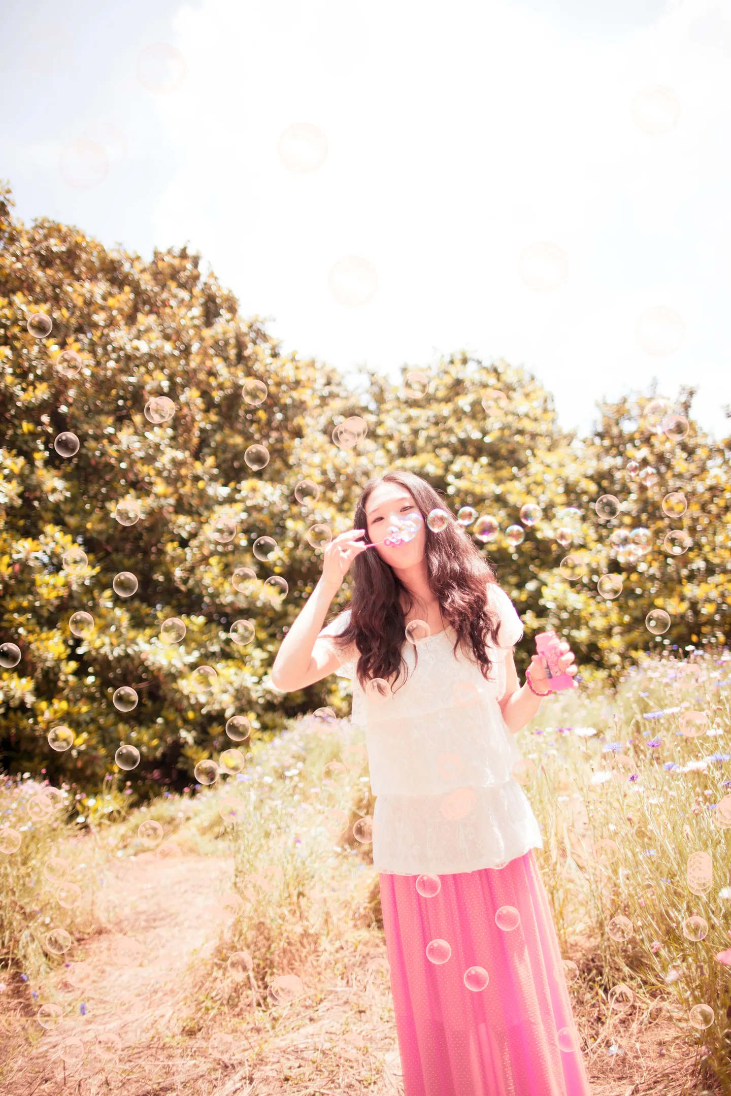求画个吹泡泡的萌妞~