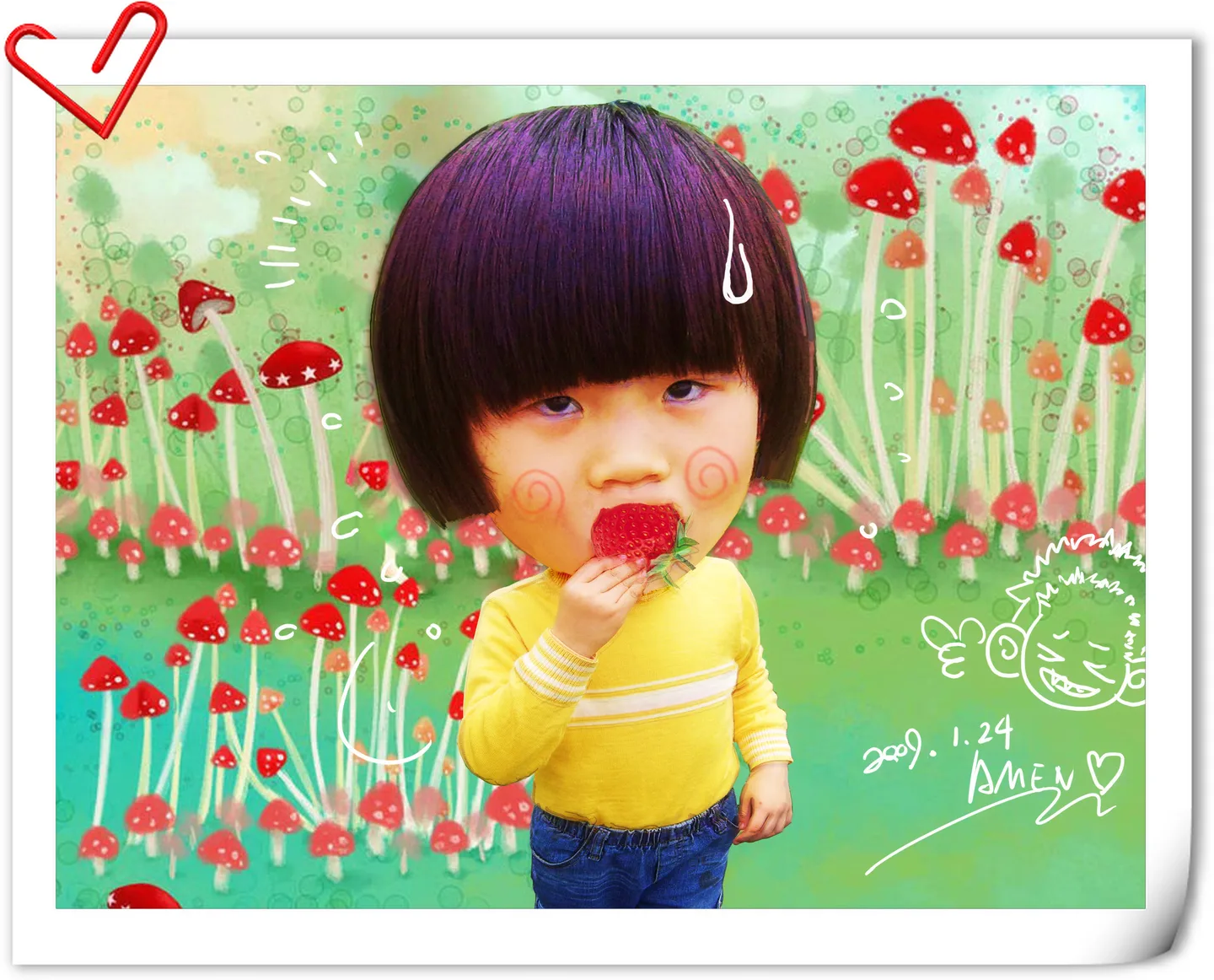 用途:家庭纪念 背景:稍作调整 让整幅图片变得可爱、调皮 基调:欢悦明快的 有点动漫的气息
