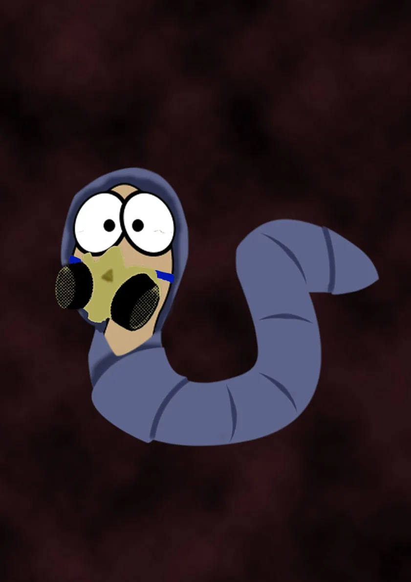 想要一张在受污染的土壤中穿着防毒衣戴着防毒帽的蚯蚓的图,可以是卡通的,大师看着办,比较急,希望有大师能接,万分感谢