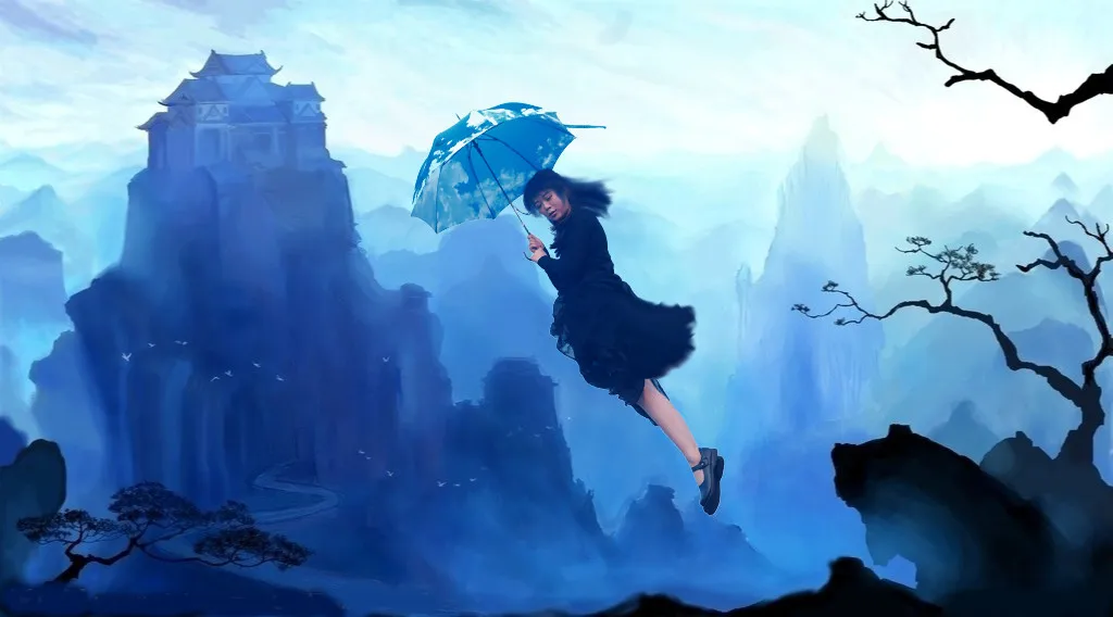 这个飞起来了,呵呵……不过如果是童话风格的背景估计会更好看,哈哈。因为感觉五岳大山这类的适合侠女或者古代的人士飞翔估计会好看点,哈哈。不过这个是个人的感觉,呵呵,不要“打”我哦,嘿嘿