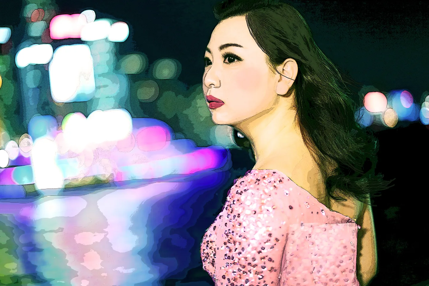 粉红的衣服好柔美呀。好像插画,真美