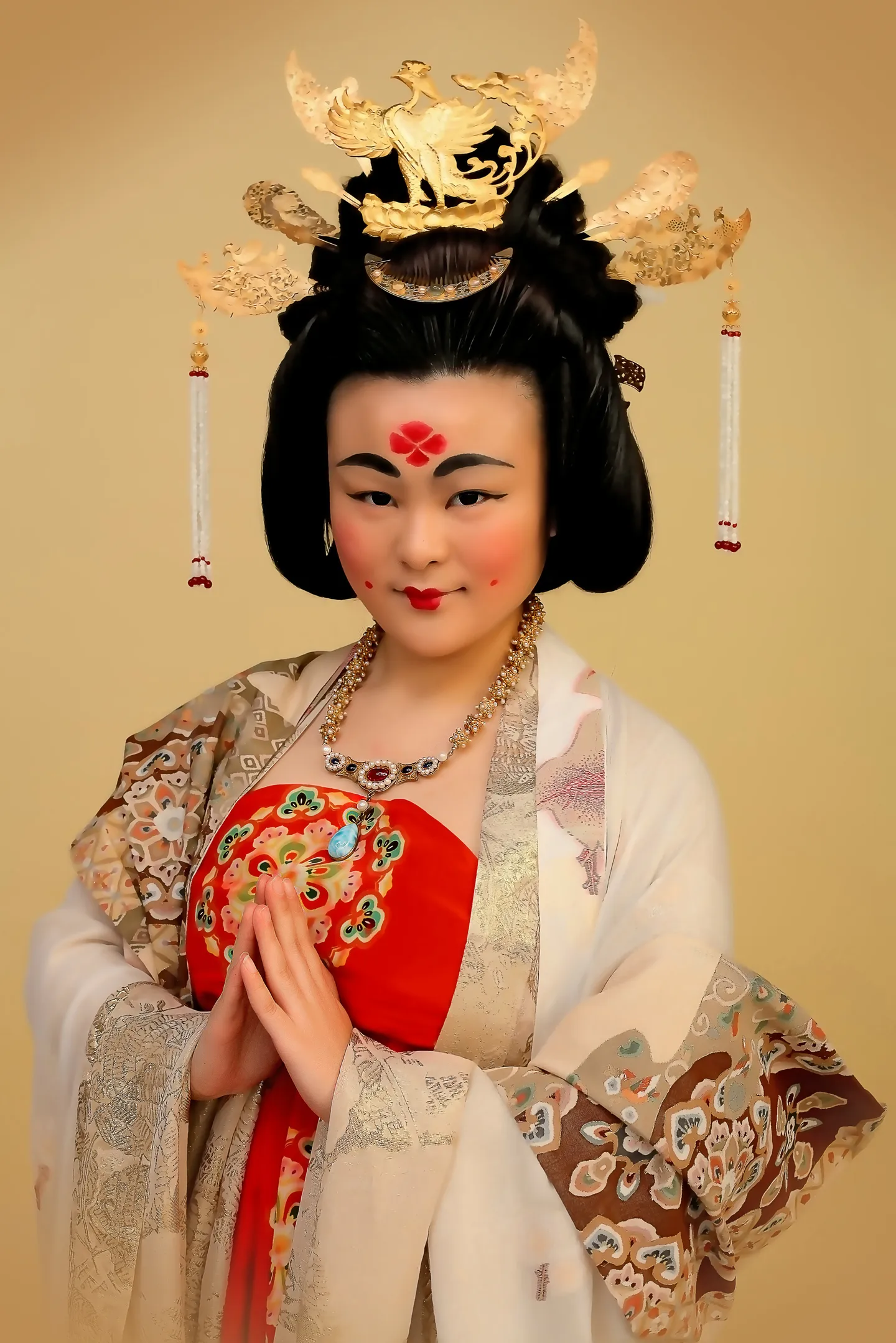 好像佛前参拜的侍女啊