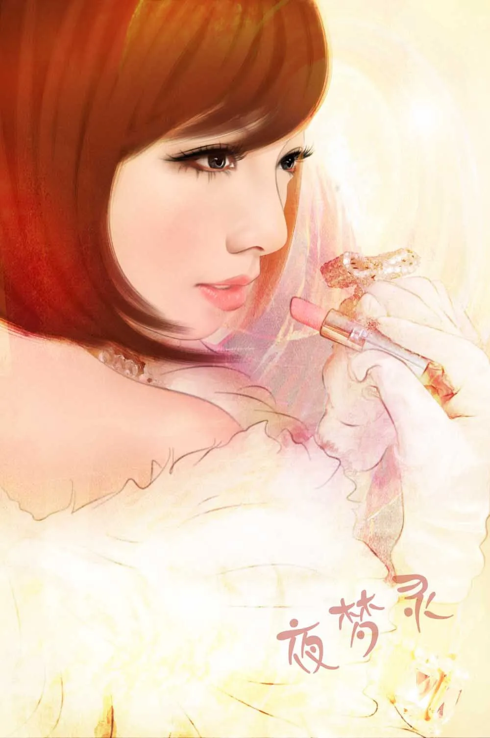 这次不是古典风了,不过依然很美,喜欢拿唇膏的样子啊,美美美。求图图