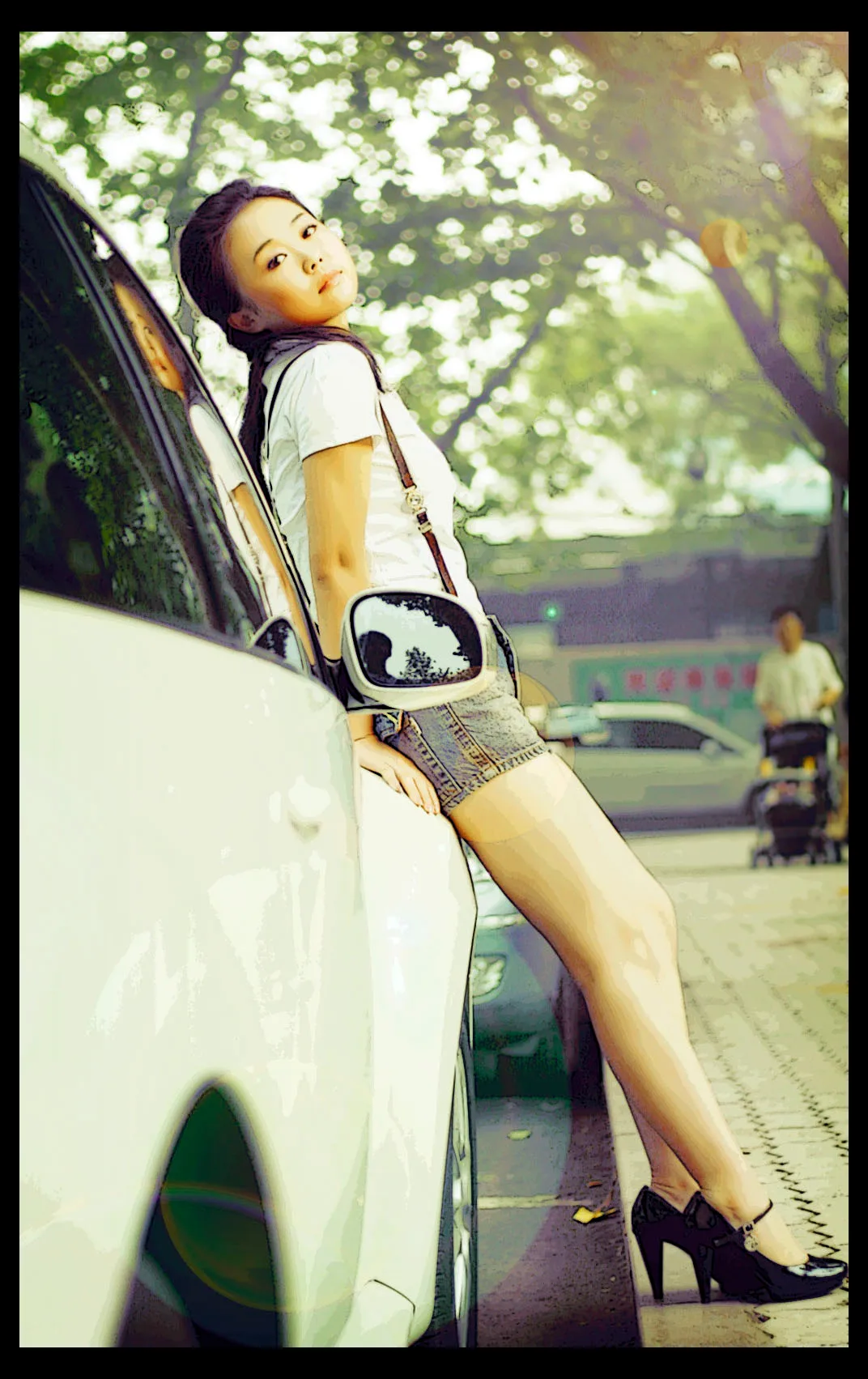 半真半画的感觉。要是把两腿中间画条线。或许退看上去会细点。O(∩_∩)O哈哈~