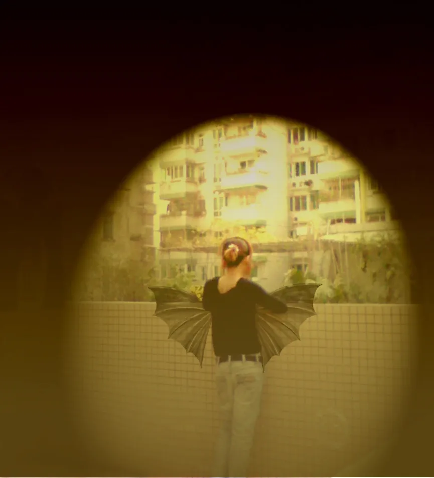 给人物换一个虚幻点的背景,在人物上加一双黑色的翅膀,