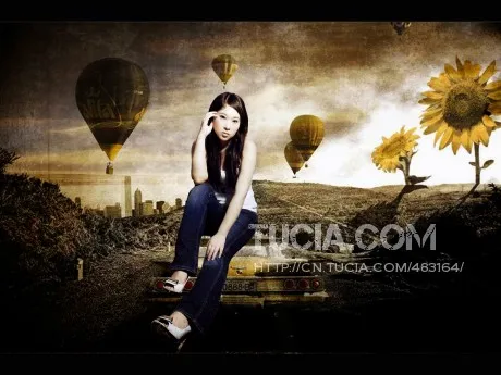 重新传这张照片。希望可以美化脸型,瘦瘦手臂,调整色调。如果大师有自己的灵感,就请大师发挥了。请有感觉的大师接。谢谢哦~~