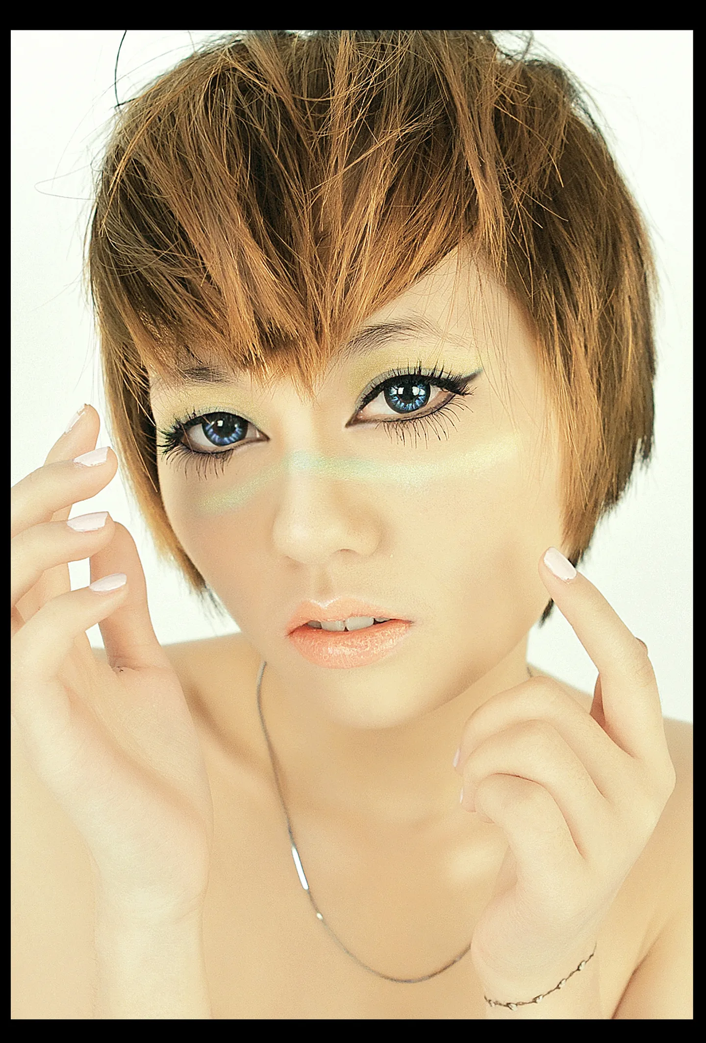 自己拍的片子,追求观念类的感觉,不要手绘,妆容再清晰些,例如上下眼线及脸上的绿色条纹,左边下睫毛希望修整一下,希望看得上眼的设计师帮忙处理一下~~3q 基调:严肃冷酷 艺术化:深度艺术化