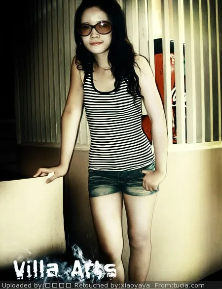 弄的非主流一点,眼镜可以不要,但眼睛要变大睫毛长长的那种大眼妹,腿再弄细长些,皮肤白晰.背景也弄的非主流点.谢谢烘培师了,辛苦你了