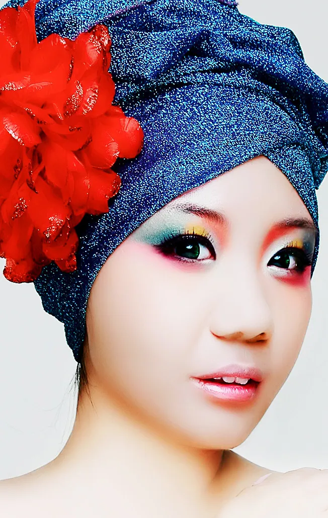 感觉头巾有点锐化过度,肤色质感很好