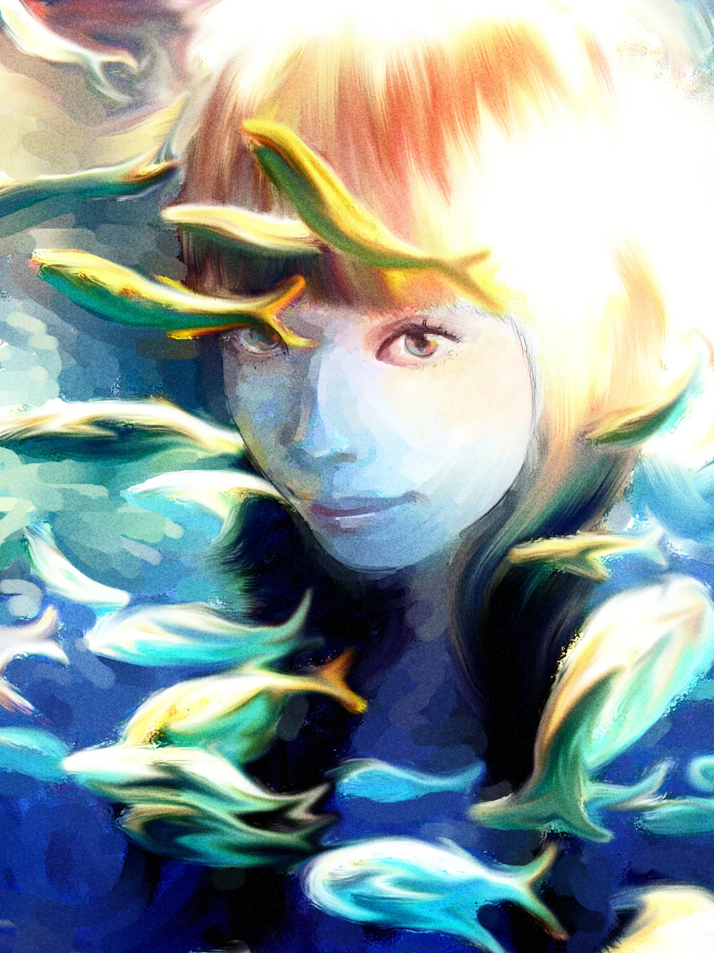 你自己显示器有问题吧··俺只是试试看纯手绘的方向而已··-。-··主要是刻画五官··那鱼还好~~哈哈~