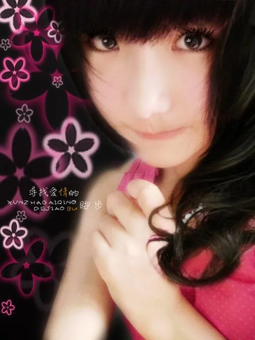 调一下色。衣服换成黑的、 美化人物脸部 头发修一下。吼吼 能换个长卷发不错~ 给人物换一个好看的背景。 左边显得很素雅,加一些个性的文字 ~ 谢谢、