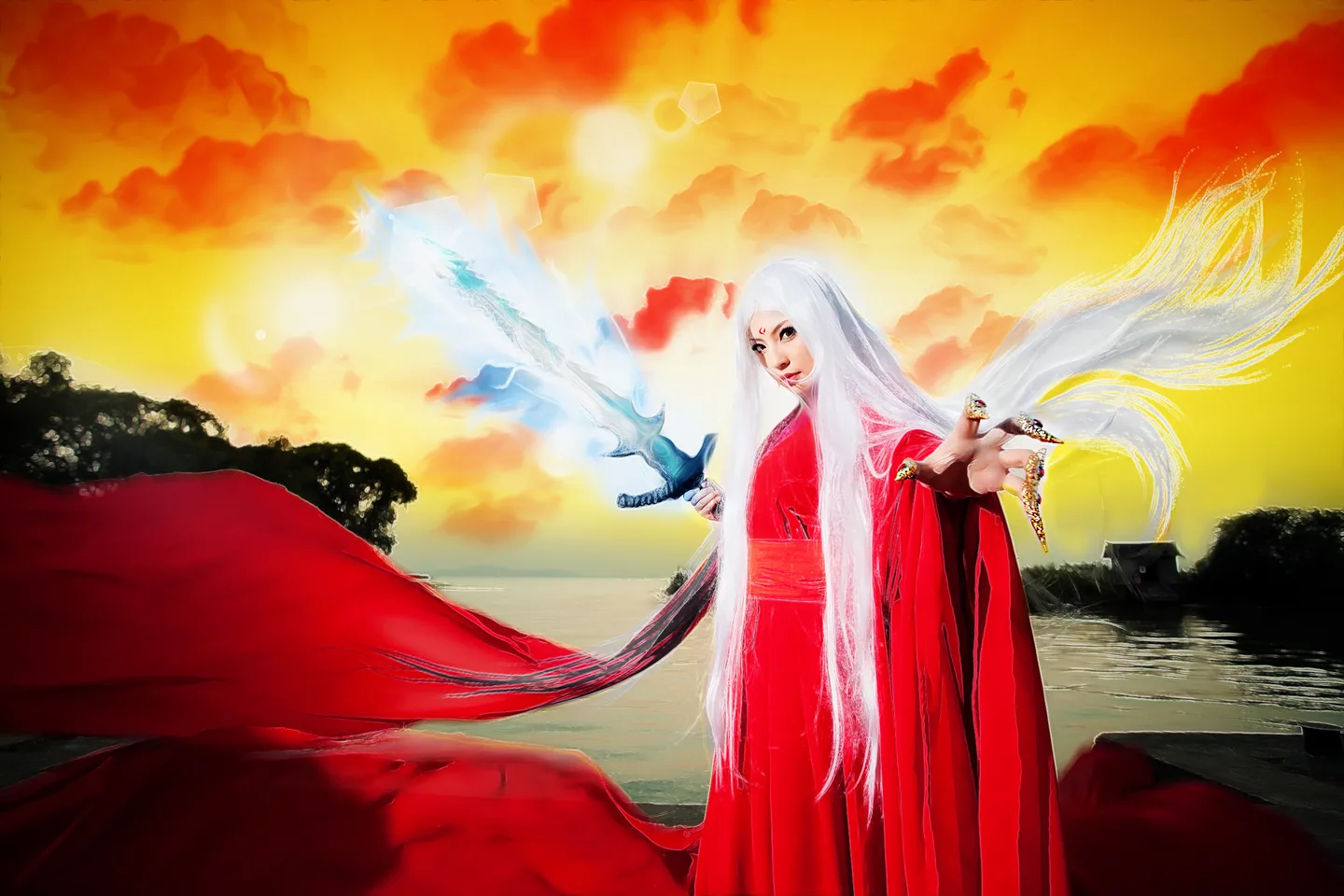 求换个红霞天空,p剑上特效,手上光球~~