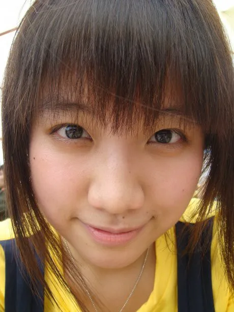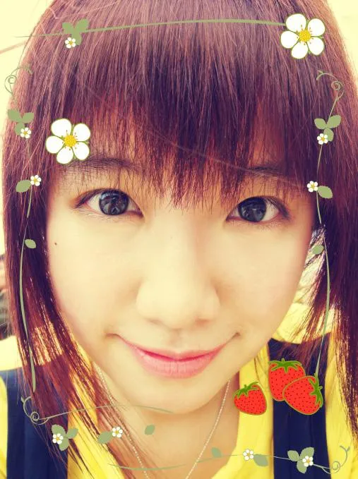 眼睛大点,有神点,鼻子和嘴上的痣去掉,嘴唇水润有血色(可以是粉色),皮肤调得好看点,脸看上去小点(看上去肉不要太多),头发颜色偏点酒红色,整体好看些漂亮点~像化过妆 背景弄得像大头贴的感觉,衣服后半部分去除(就是蓝色带子与黄色交界处后方) 用途:娱乐