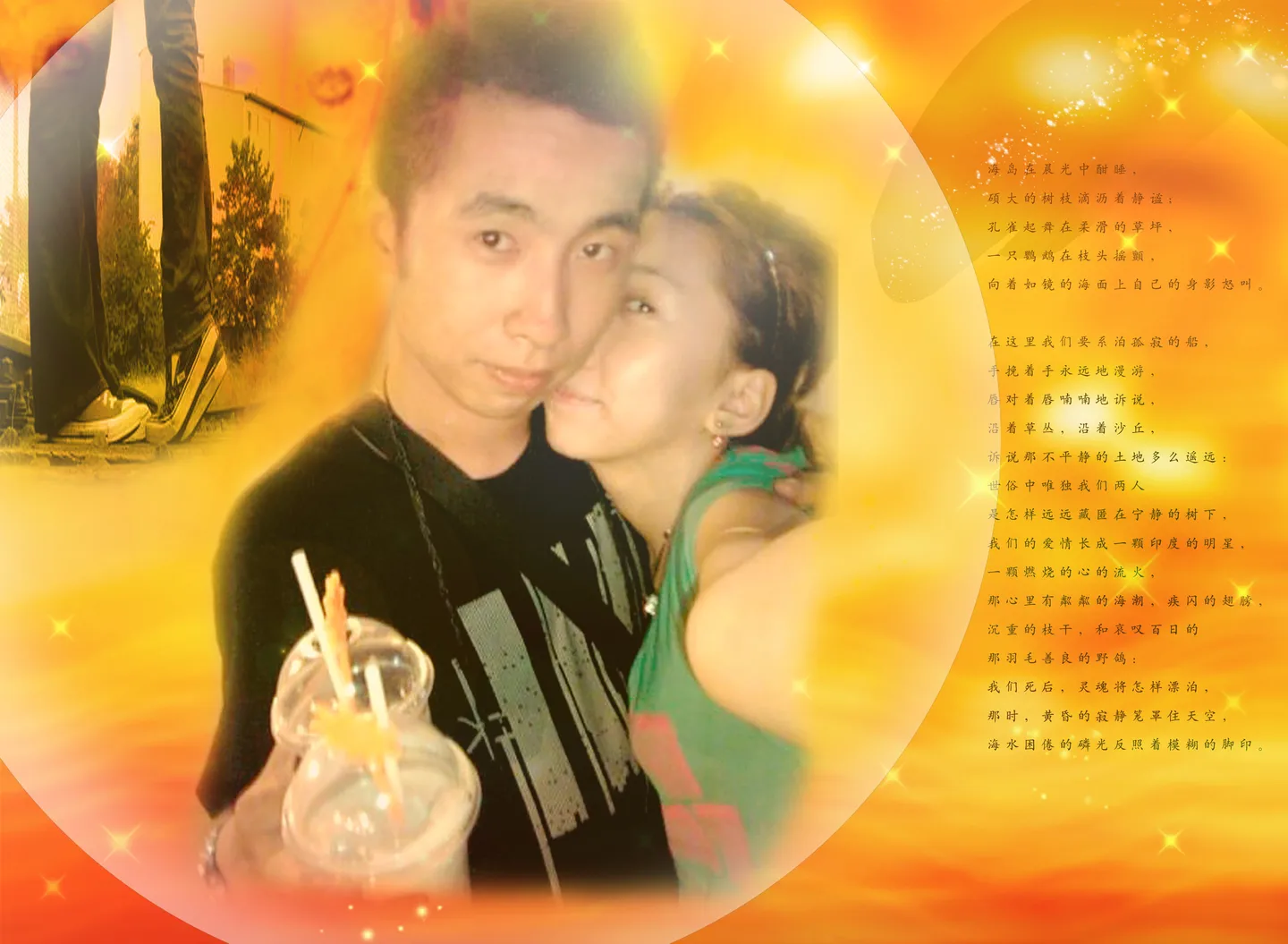 换下背景吧~~把我们弄的更亲密一些!!谢谢大师!~!~谢绝刷图