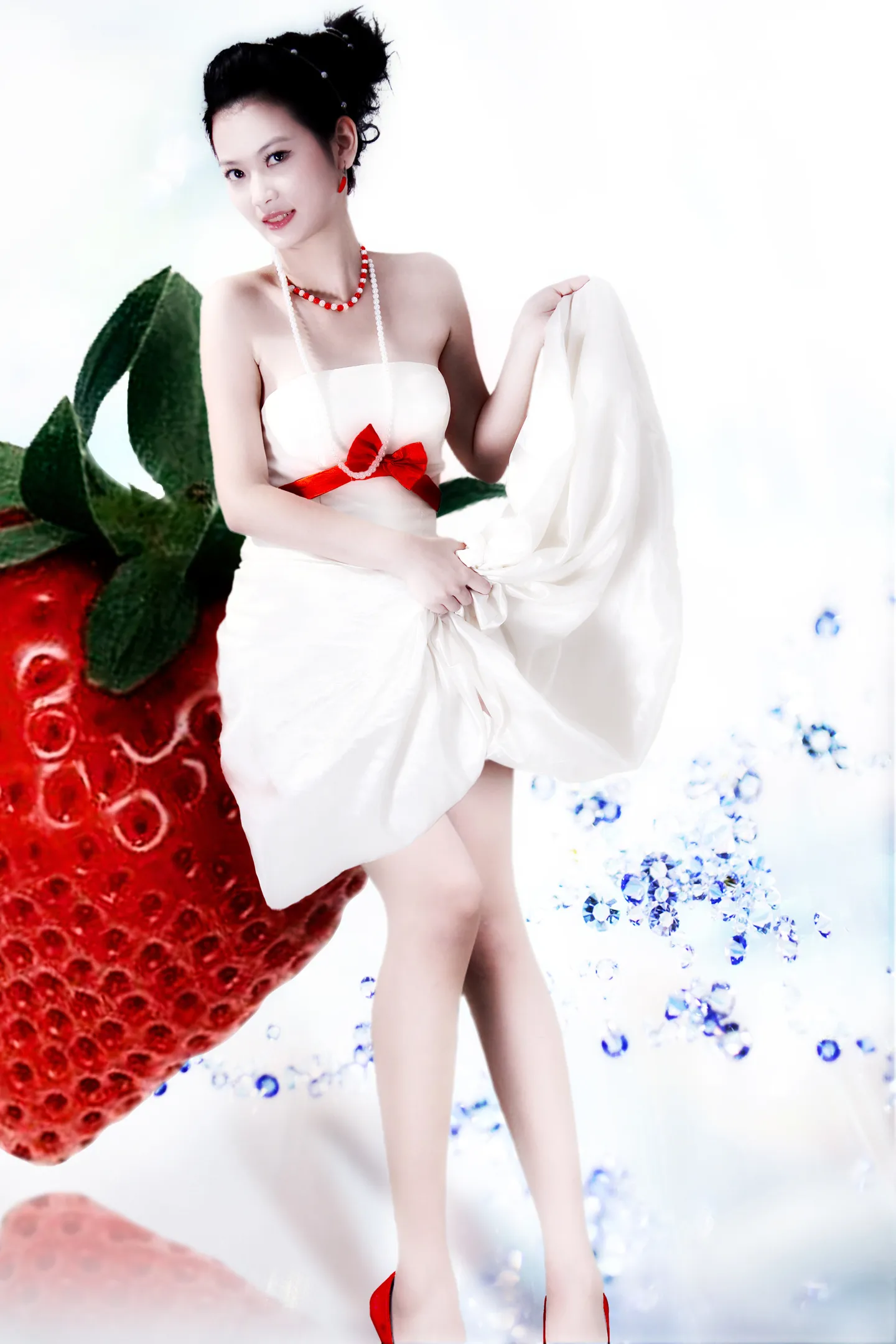 设计师:你好! 我希望换一个好看的背景; 感觉有点分不清脸跟脖子,希望脸能瓜子点,额头像长了角,处理一下 腿拉直拉长 基调:欢悦明快的,梦幻点,朦朦的,不要太鲜艳了 艺术化:轻微艺术化 非常感谢