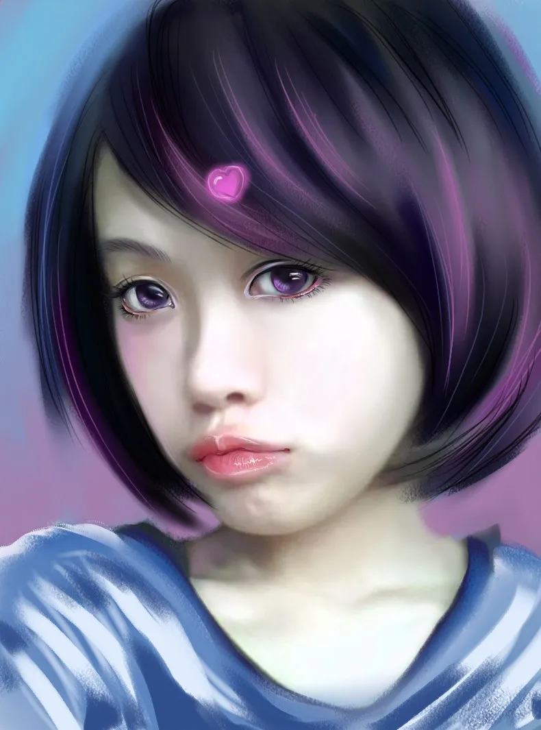在原照片基础上画的背景,眼睛,头发,和嘴巴,涂了2下衣服,其他的没有动……