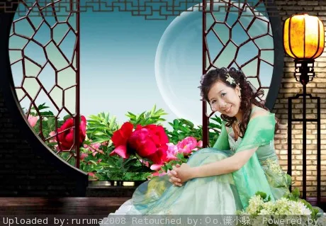 请大师修饰一下眼睛和皮肤。谢谢了! 用途:家庭纪念 基调:典雅唯美