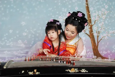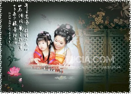 主要是想换一个古典的实景。然后把成人的脸部皮肤修光洁些。脖子上的伤痕修掉。谢谢。