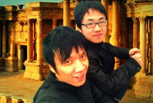 “把雀斑去掉”、“把肤色调亮”、“突出主人公”等。。。 美化人物脸部,突出我跟我 表弟,把上面那个没有头的那个人的背影去掉