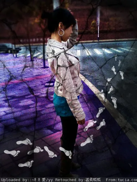 体现寂寞之感``突出人物及斑马线``谢谢``