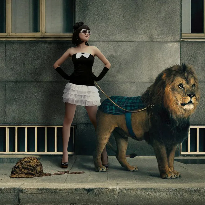 如果娃娃出门都带着只狮子,那真是酷毙了~~