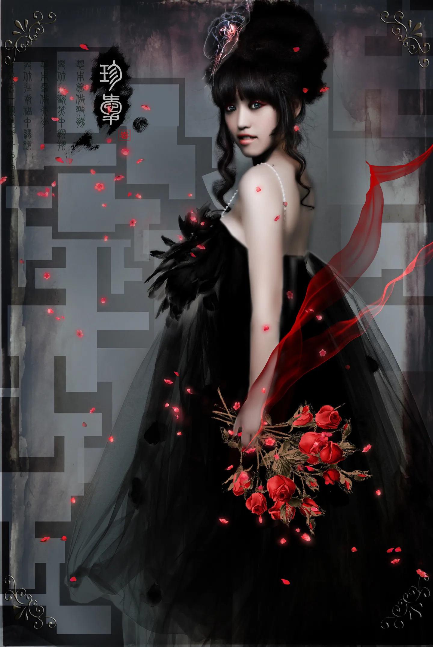 啊啊啊啊啊 哈哈 本来它跟花都是白的来这 留的 想要黑白效果的 结果加上红了 就红白黑吧