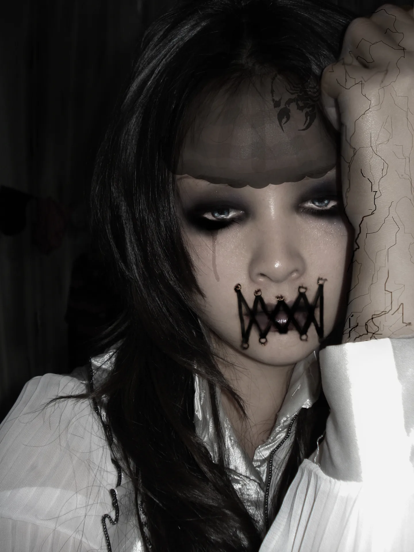(看大图是否能看到缝合的皮肤有被拉扯过的感觉?)