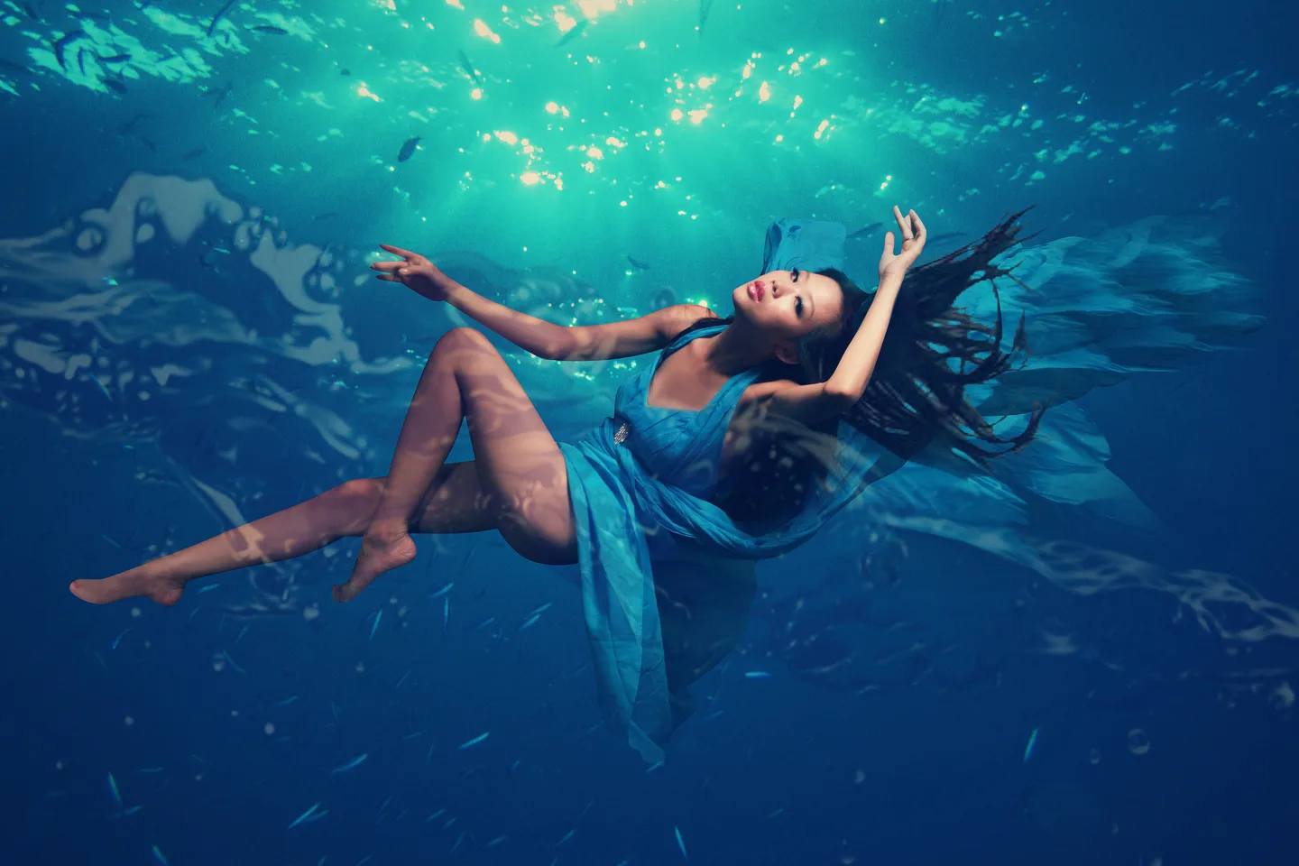 可以把照片p成海底的效果么~亲~或者自由发挥~唯美就行~这张图穿帮太多了~ 换一个好看的背景