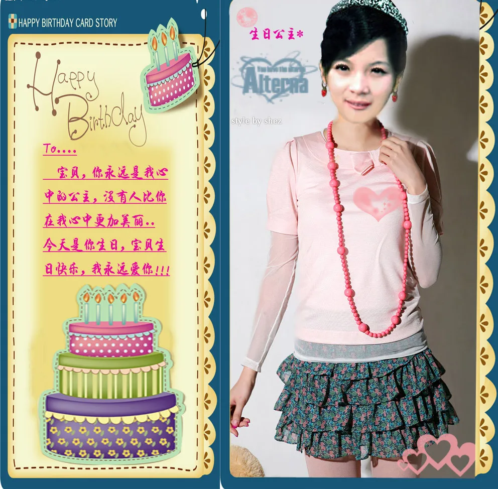 用途:生日时的惊喜 基调:典雅唯美 艺术化:深度艺术化 背景:稍作调整 脸型、头发、表情、衣服以及饰品表情做以调整