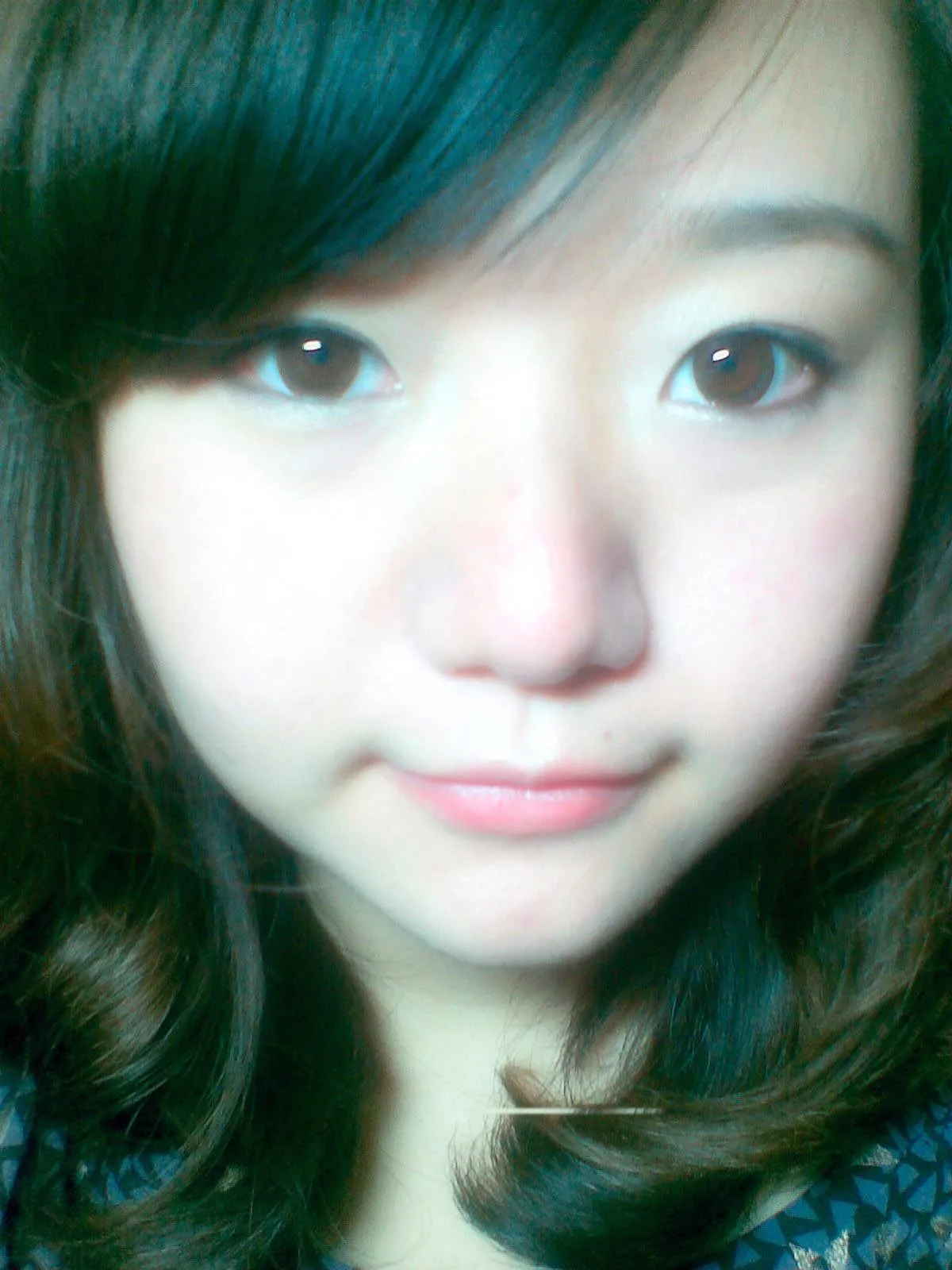室友正在学PS 不小心眼睛整成蓝色的了 请大师们帮帮忙吧~ 她希望脸色红润一点 谢谢~! 艺术化:保持真实性