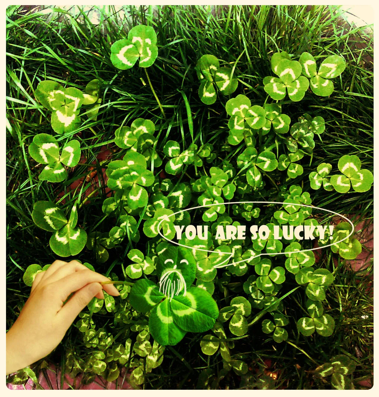 可惜这个手不是我的。。嘿嘿。我拽跑了四叶草~这次有拽跑了~