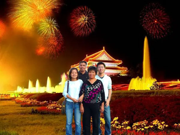 急用,过年要带回家给父母看的,请大师们出手吧~谢谢 请将肤色调亮,突出主人公,换一个干净点的背景, 温馨一点的,现在的背景行人太多了.