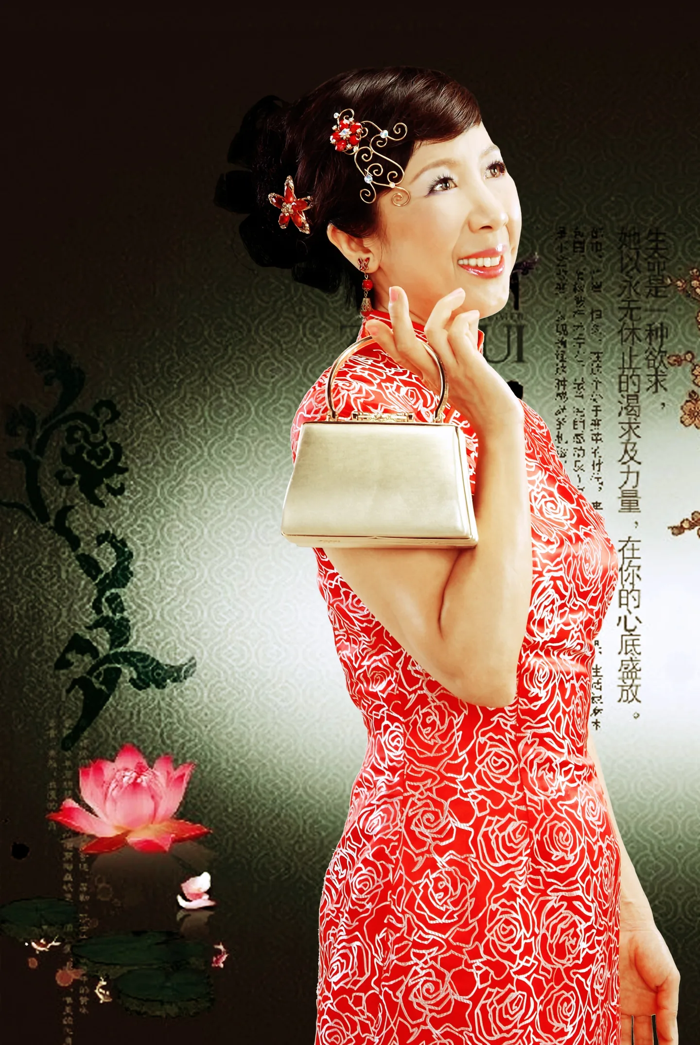 麻烦大师将人修饰的漂亮些,添加背景,希望古典风格的,谢谢了,辛苦了! 用途:家庭纪念 基调:典雅唯美 艺术化:深度艺术化 背景:朦胧化