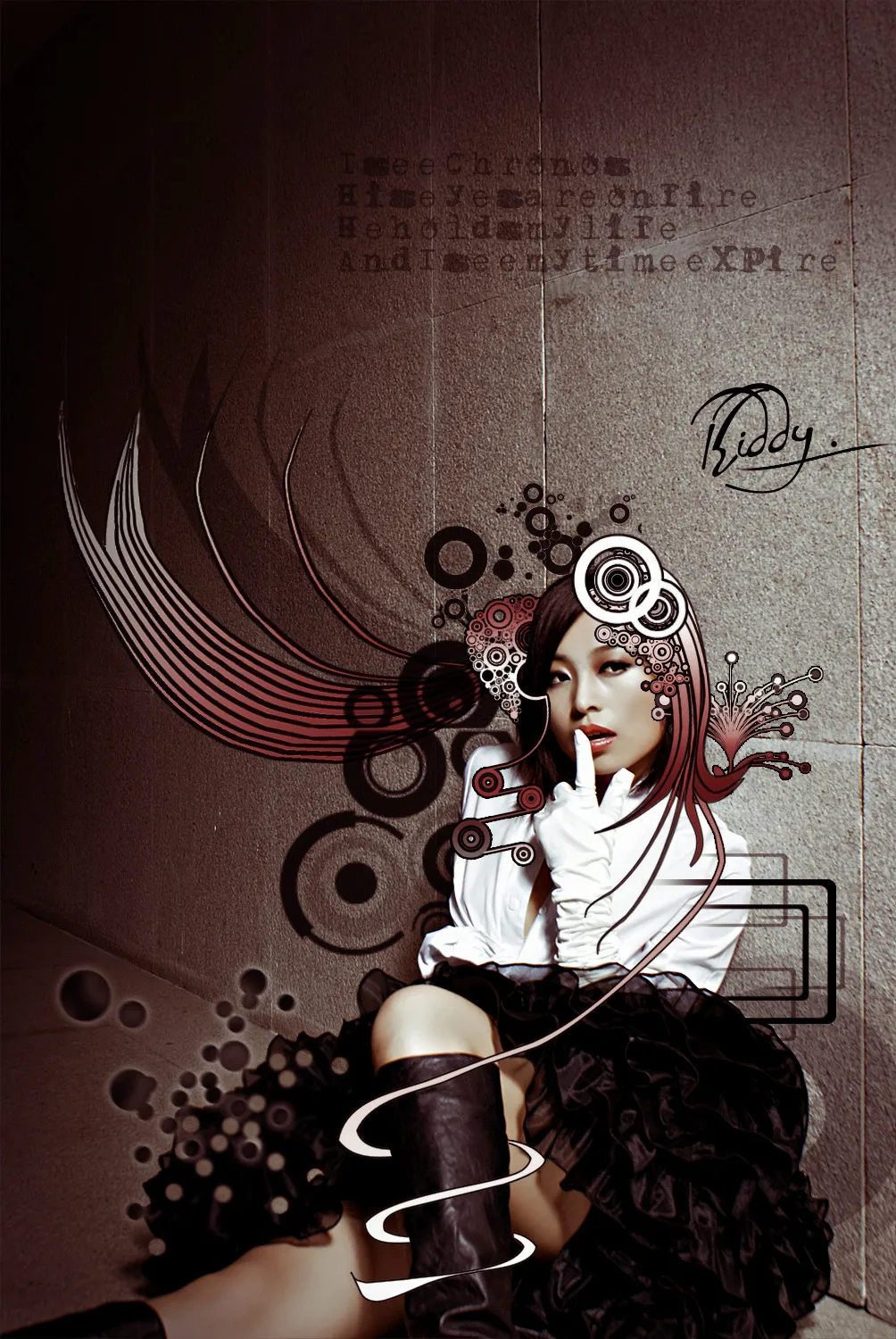 背景空了些,帮我加些素材,可以加我的签名kiddy 艺术化:轻微艺术化 背景:稍作调整