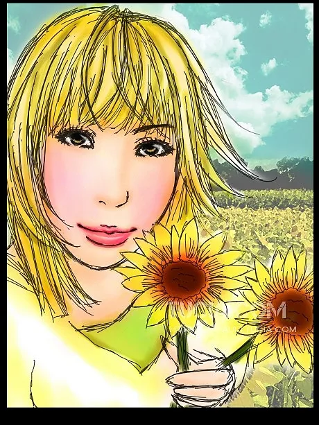 嘻嘻 可以做成拿着向日葵的图麼? 请接我的图图吧 喜欢你的风格啊