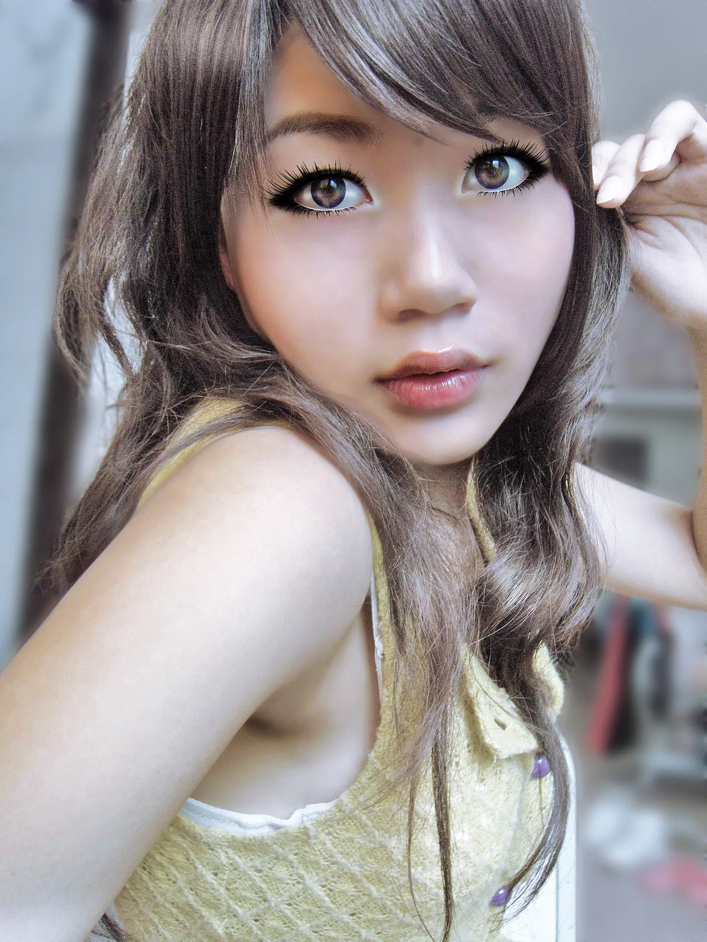 后面的头发空白处没有模糊掉,修改下再看整体会好电~