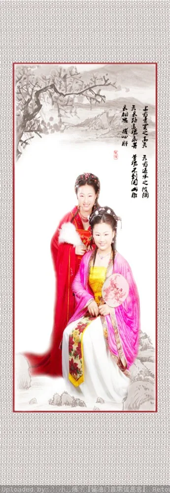 如果将人物身上的线条、纹路等描绘出来就跟像古代仕女图了````这张图片更适合唐朝仕女图``