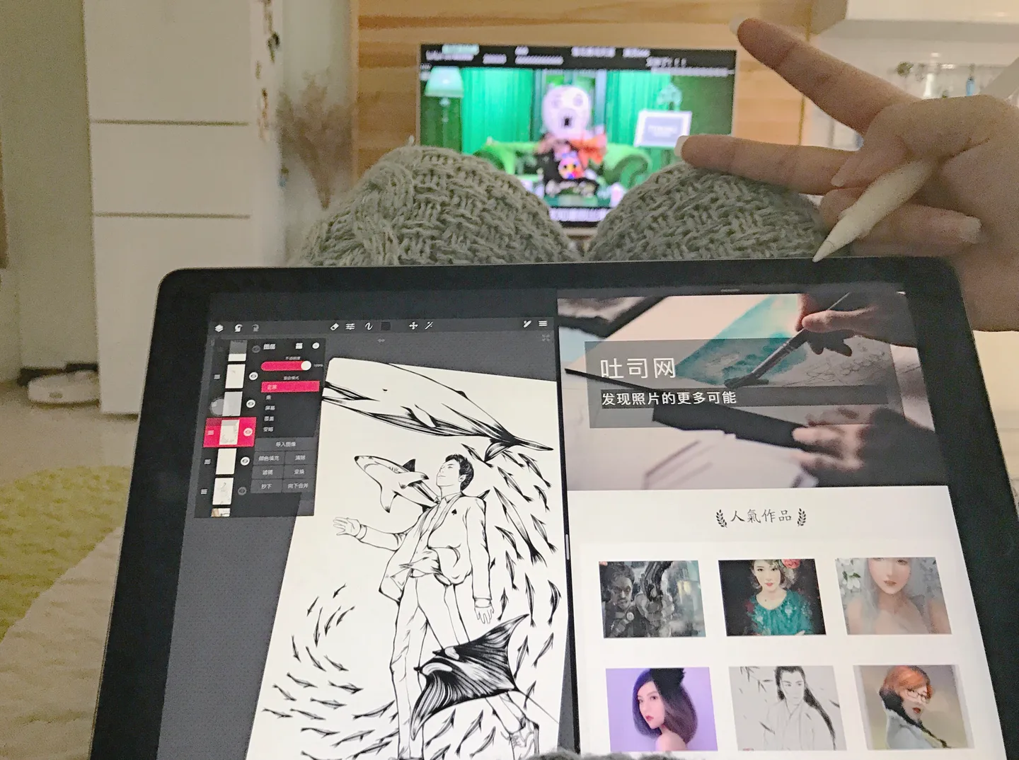电脑没电了。。。电源有点远。。。我一般躺着盖被子。。或者在床上盘着腿。。不太画画。就收图传图会开电脑。吐司绑微信以后,天...